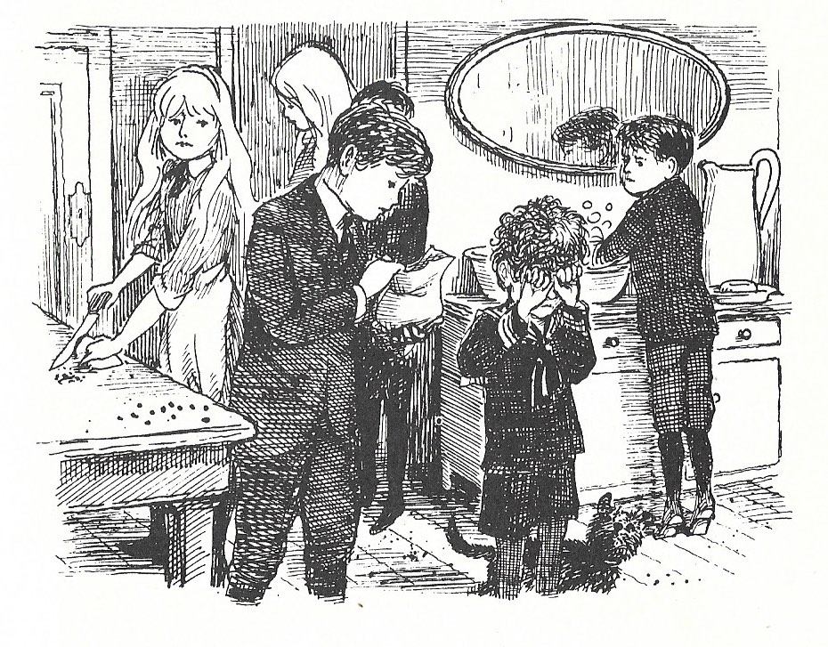 When it emerges that the younger Bastable children have begged the money under the pretence that is was for needy children, they are plagued by guilt and set about distributing the dubious ‘conscience pudding’ to the poor.