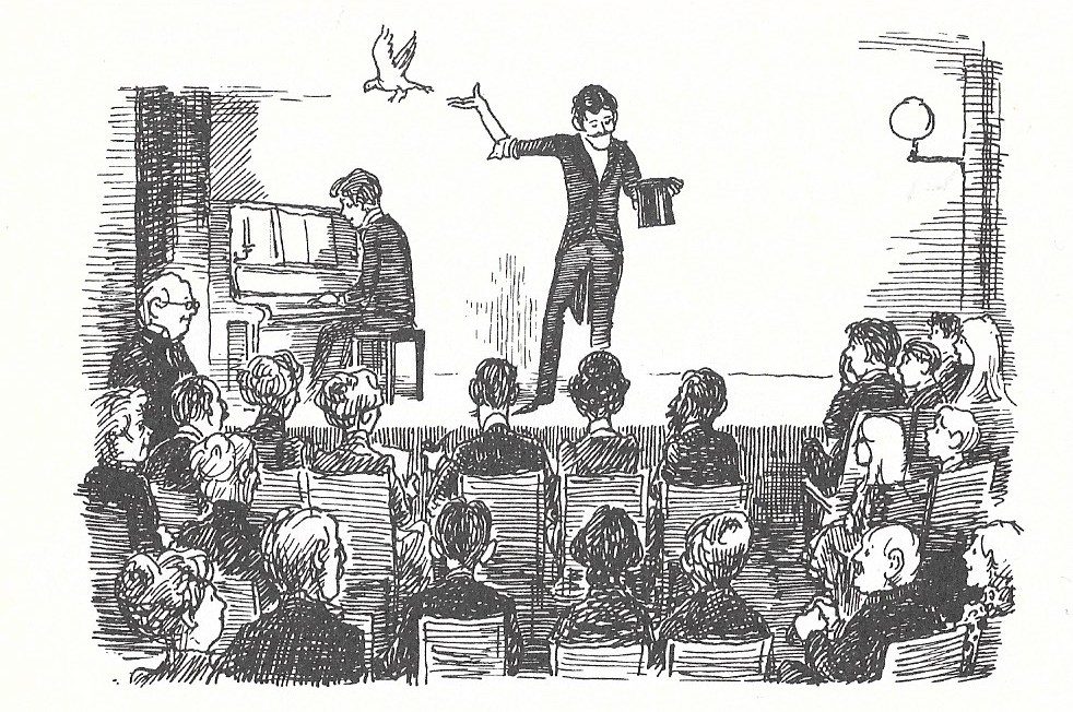 ‘After tea it was the entertainment. Songs and conjuring and a play called “Box and Cox,” very amusing, and a lot of throwing things about in it—bacon and chops and things—and minstrels. We clapped till our hands were sore.’