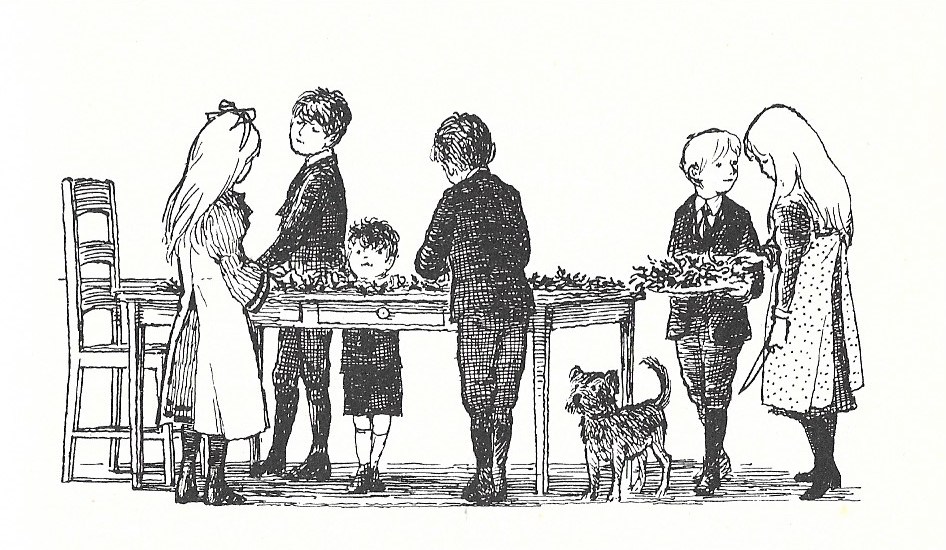 ‘It was Christmas, nearly a year after Mother died. I cannot write about Mother—but I will just say one thing. If she had only been away for a little while, and not for always, we shouldn’t have been so keen on having a Christmas. I didn’t understand this then, but I am much older now, and I think it was just because everything was so different and horrid we felt we must do something; and perhaps we were not particular enough what.’