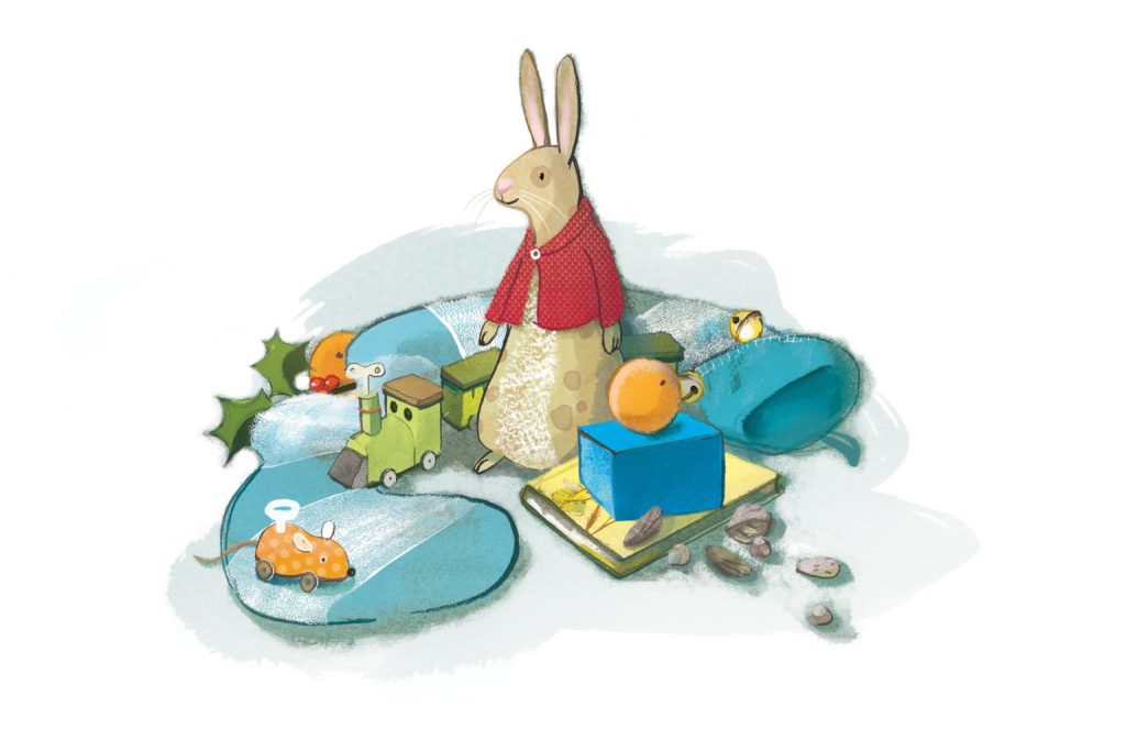 ‘On Christmas morning, when he sat wedged in the top of the Boy’s stocking, with a sprig of holly between his paws, the effect was charming. There were other things in the stocking, nuts and oranges and a toy engine, and chocolate almonds and a clockwork mouse, but the Rabbit was quite the best of all.’