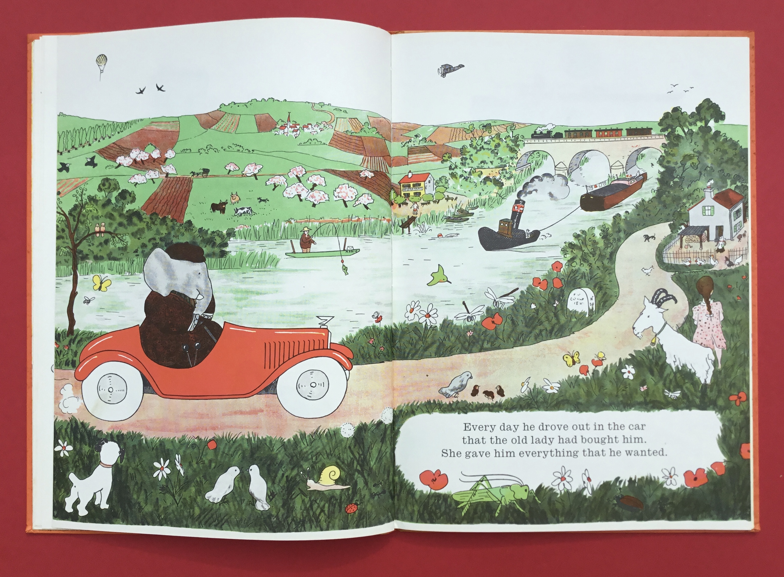 Maurice Sendak, a huge fan of the books wrote that, ‘scale is crucial to de Brunhoff’s pictures. Those first editions of Babar have an undiminished splendour with their huge, delectable formats and grand, spacious compositions. They are as pleasing to the eye and as totally original as anything coming out of that fine and rare period of French art.’