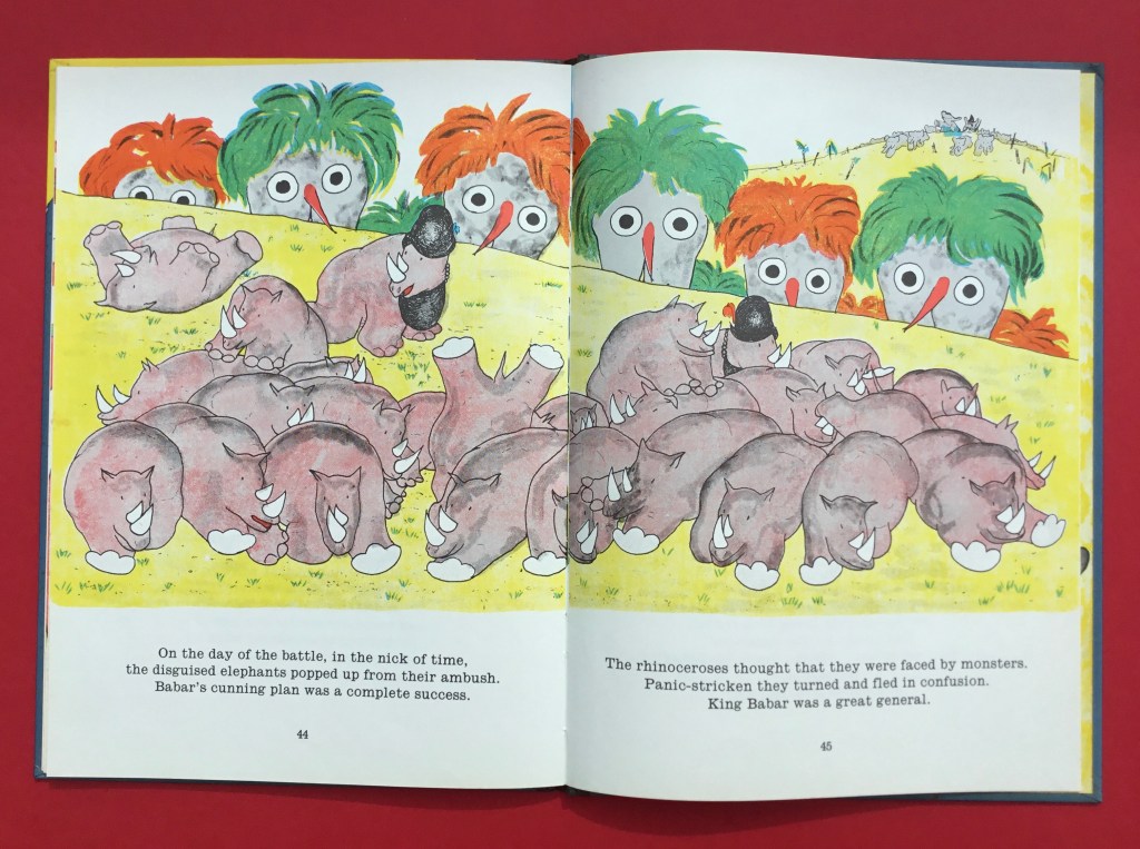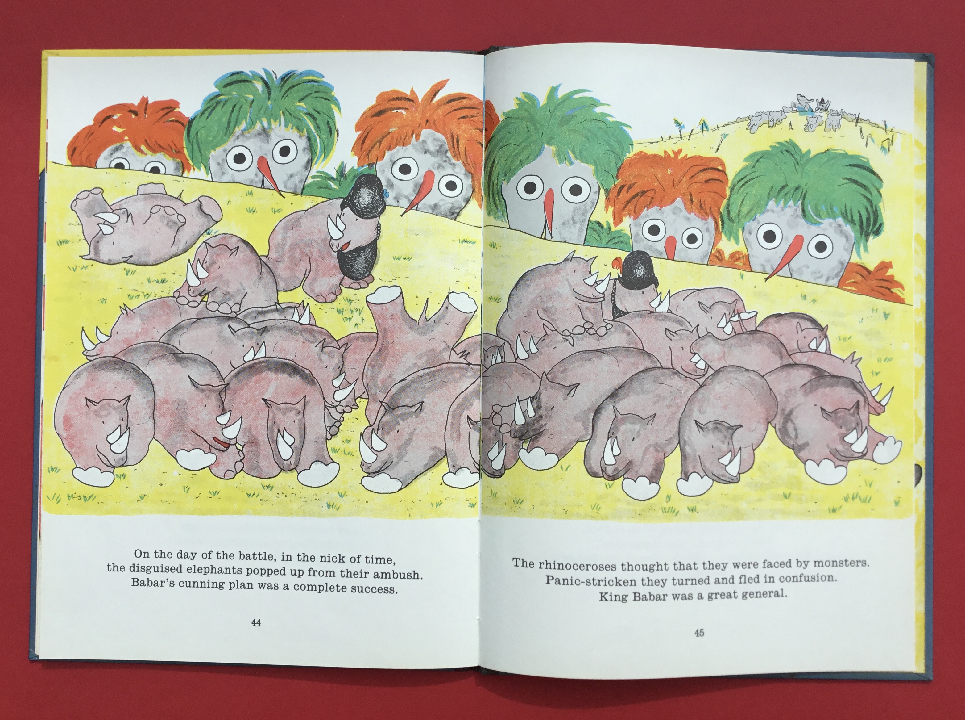 The early Babar books were published in an oversized format, allowing the reader to really ‘climb into’ the epic double page spreads that are a special feature of this sequel.