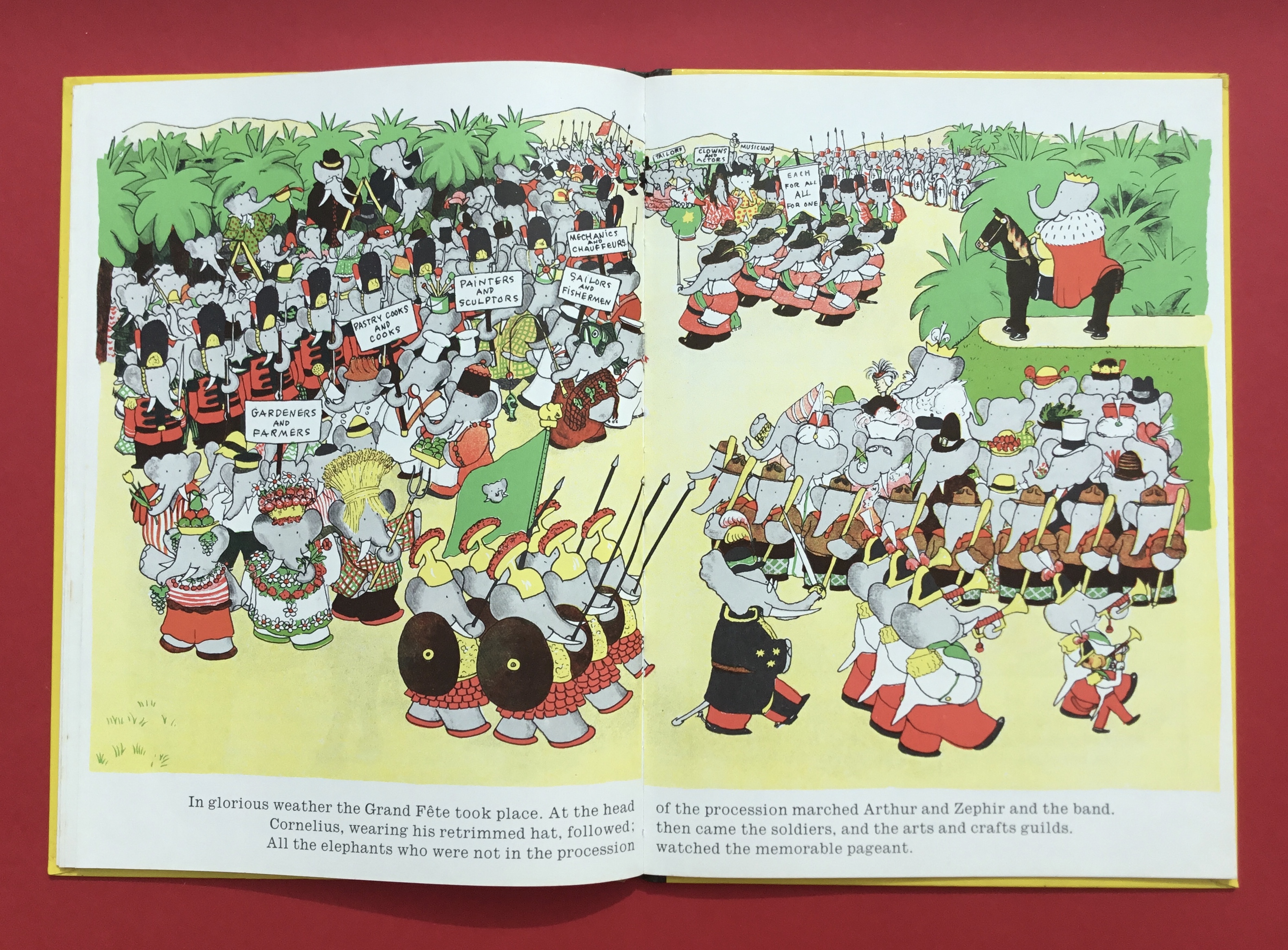 Of course revolution never comes to Celesteville. Babar the King culminates in another precession. Zephir the monkey is at its head, waving a flag which reads: Long live happiness. It’s the end of an unofficial trilogy that’s taken young readers through profound emotional upheaval and seismic political change. Long live Babar.