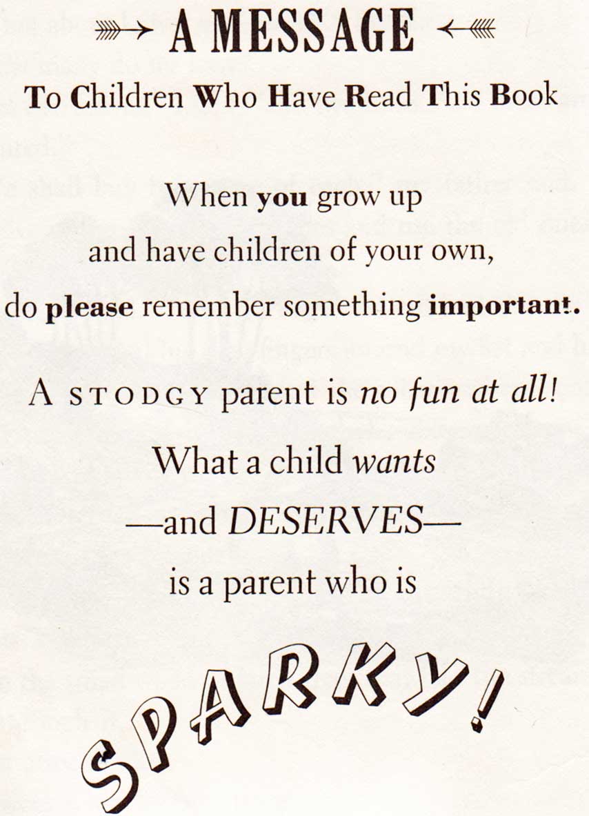 In case you’re left with any doubt as to the author’s own feelings on parenting, he helpfully includes this concluding message.