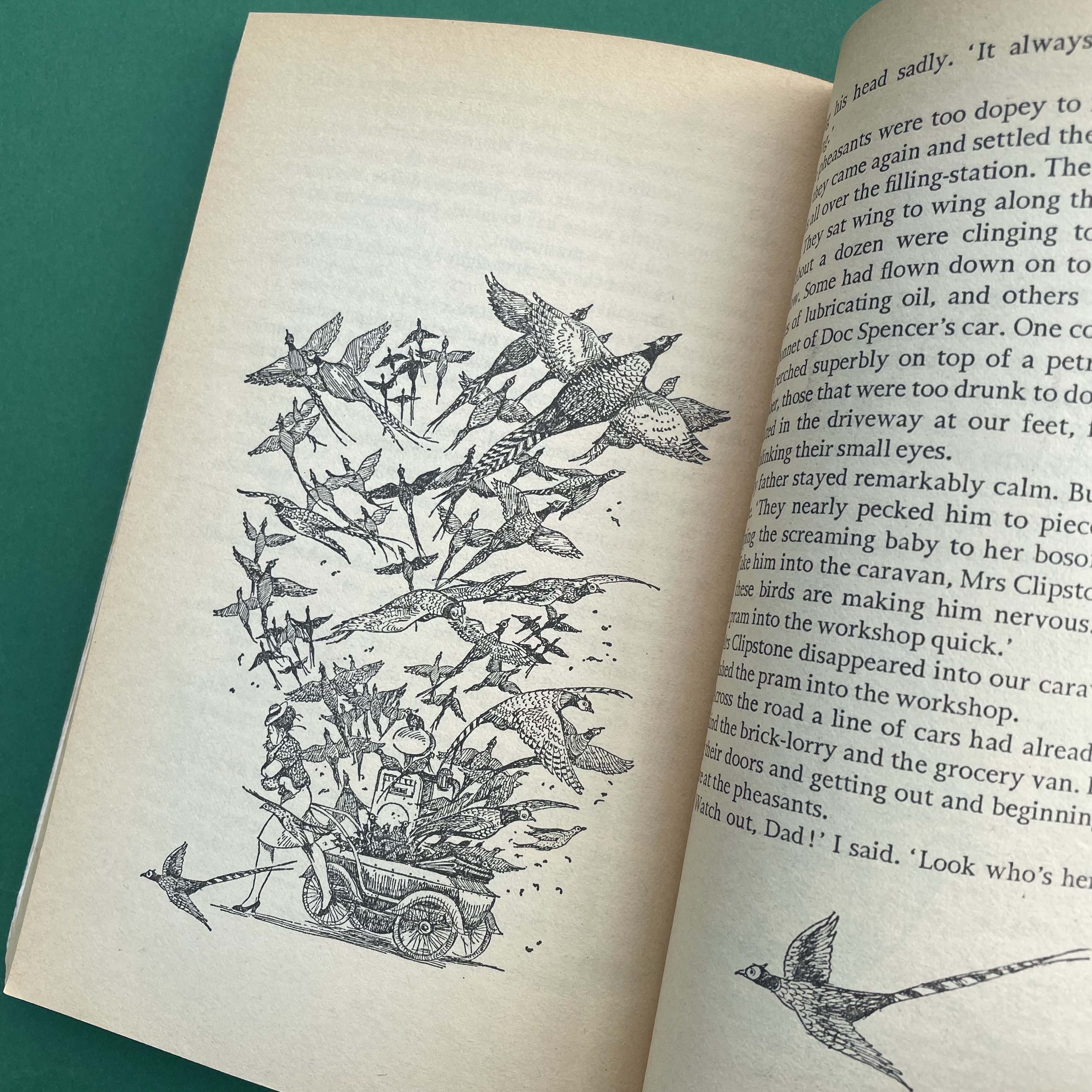 The book saw the return of artist Jill Bennett, who had previously been commissioned by Puffin editor Kaye Webb to provide illustrations for Fantastic Mr Fox. Quentin Blake aside, I think her work is the best match for Dahl’s stories. She captures the emotion of the story perfectly, but also its excitement and humour – specifically the moment where hundreds of drugged pheasants wake up and escape from a Silver Cross pram.